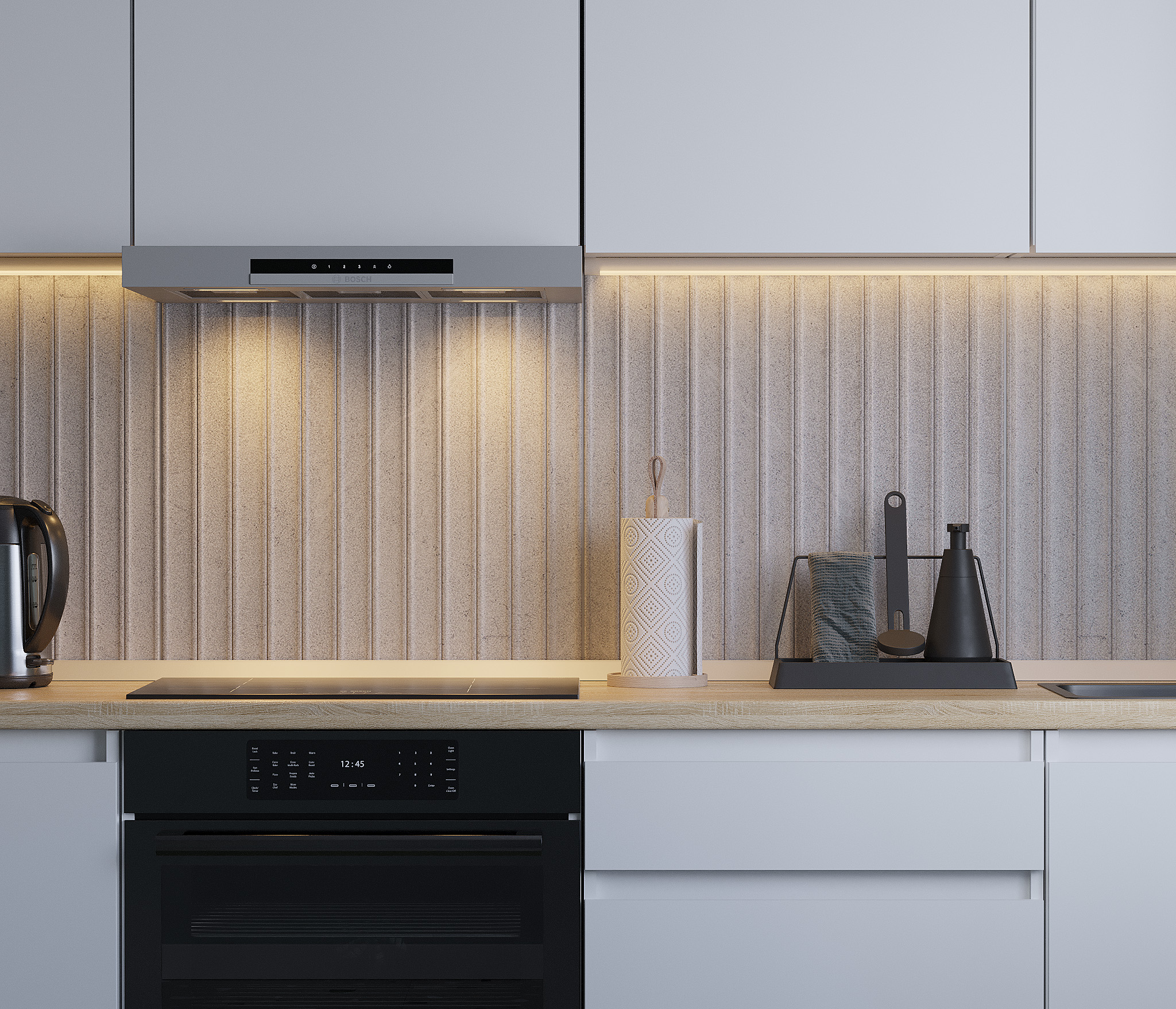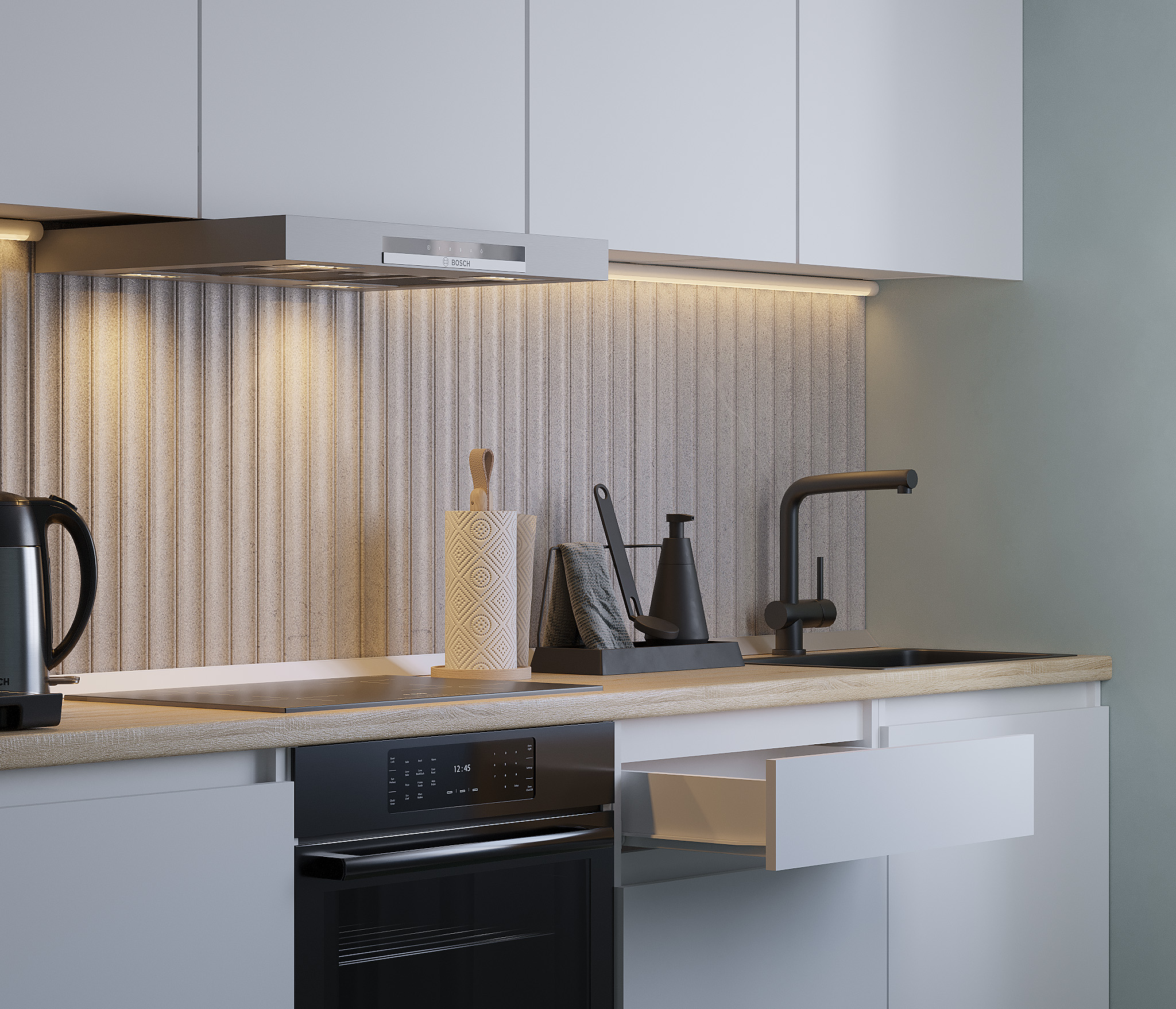 Кухня Леон сочетает в себе функциональность, стиль и доступность, и является прекрасным выбором для тех, кто ищет компактное и удобное решение для своей кухни. Кухонный гарнитур Леон идеально подходит для помещений с ограниченным пространством. Корпус и фасады выполнены из белого ЛДСП. Фасады столов и шкафов не имеют лицевой фурнитуры и открываются захватом за тыльный край фасада. Леон смотрится современно, а отсутствие ручек упрощает уход за поверхностью.