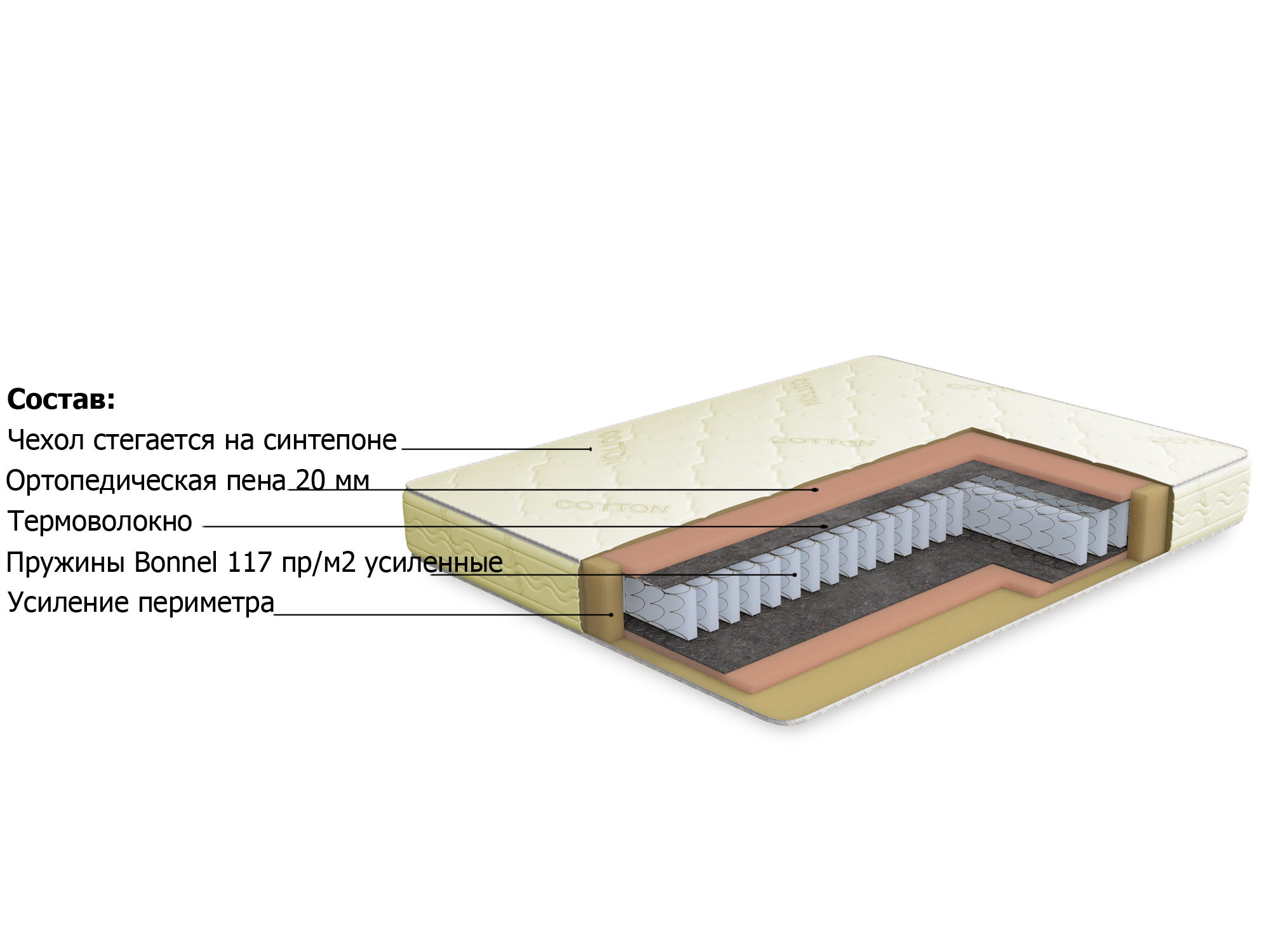 Матрас качественный, пружины не скрипят.
