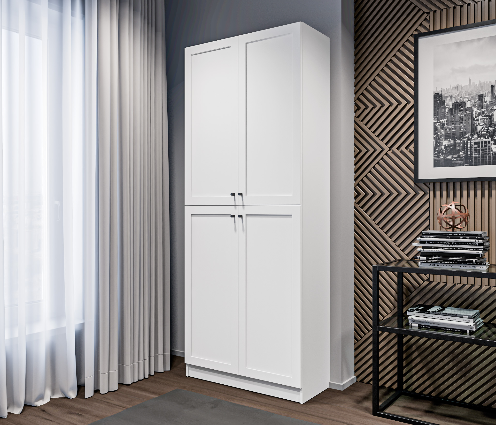 МС Твин предоставляет возможность собрать шкаф или стеллаж по своему вкусу. Вы сами выбираете размеры, цвет ручек: белый или черный, наполнение: ящик или полки. Помимо этого, вы можете решить, оставить фасады глухими или выбрать стеклянные, чтобы добавить прозрачности и легкости в ваш интерьер. Создайте шкаф-стеллаж, который идеально подходит для ваших потребностей и вписывается в ваш стиль.